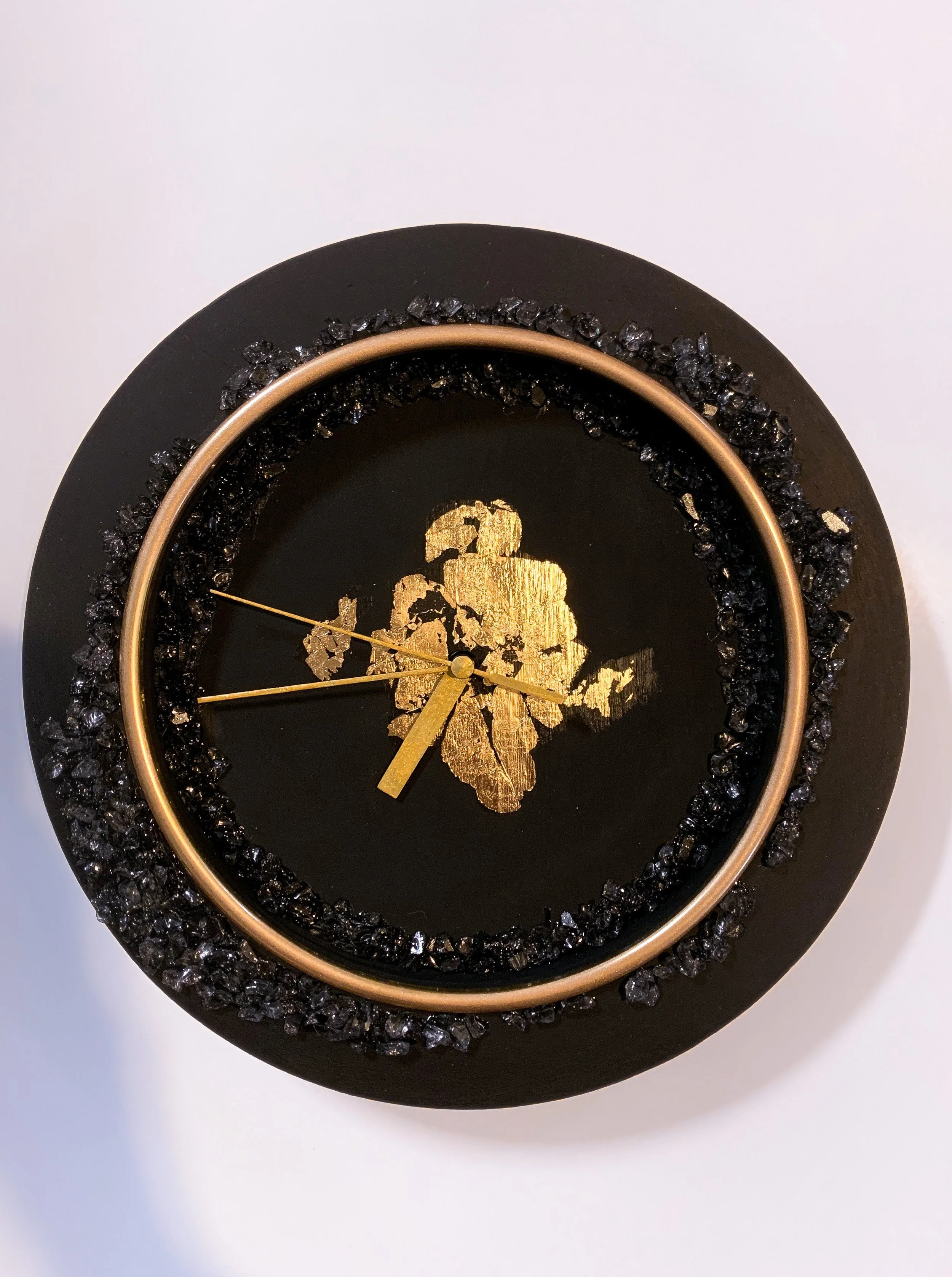 One of my favorite pieces, I designed this clock using black crushed glass to create a fun texture that can’t be found just anywhere!